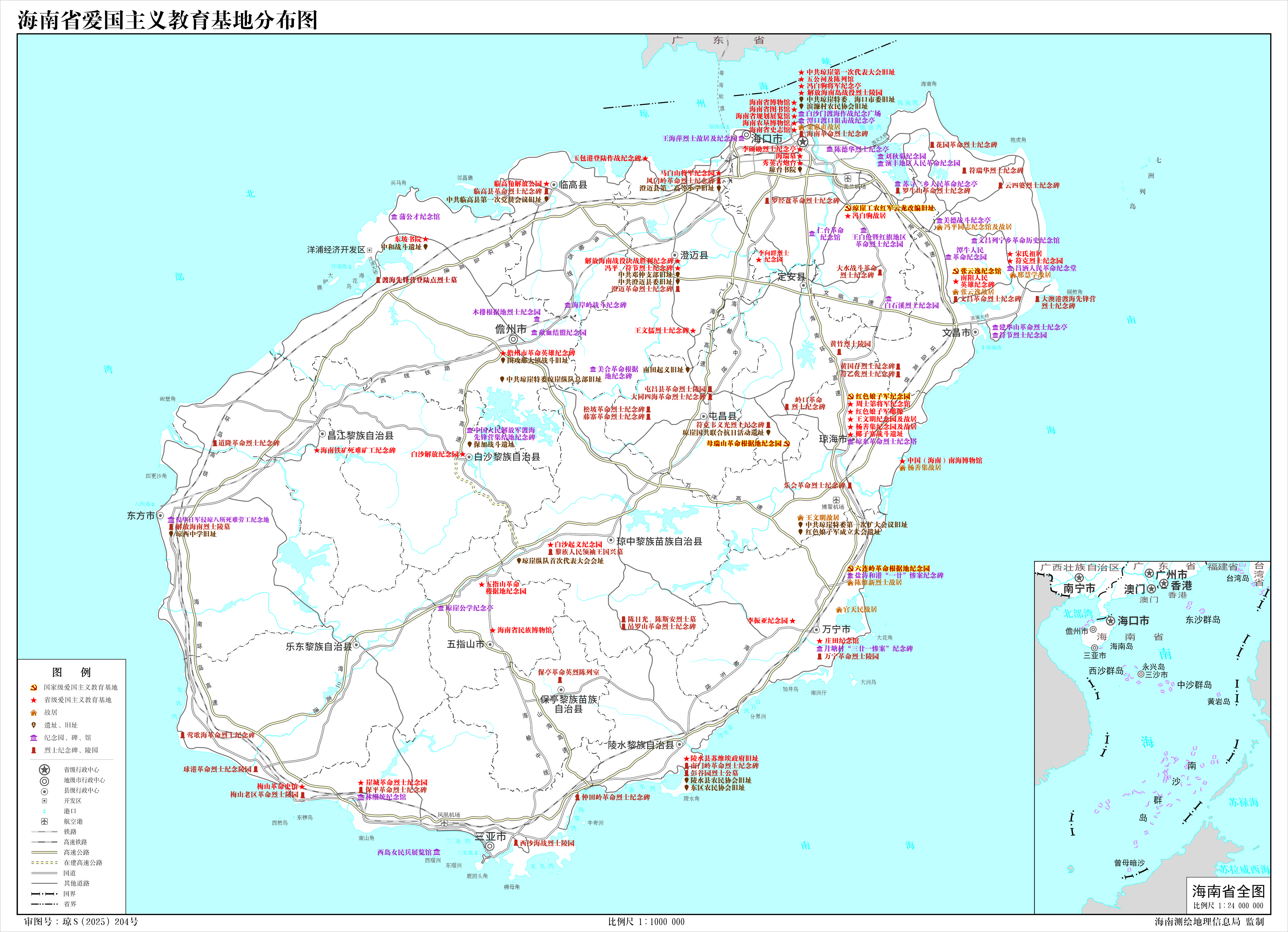 海南省爱国主义教育基地分布图