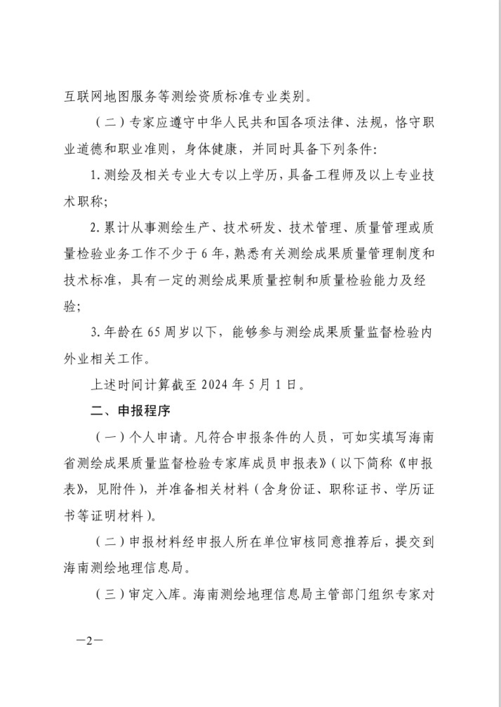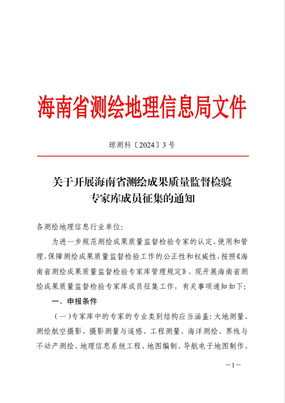 关于开展海南省测绘成果质量监督检验专家库成员征集的通知