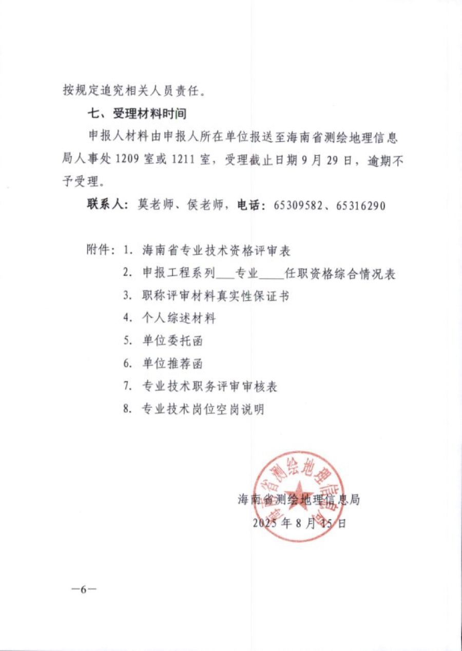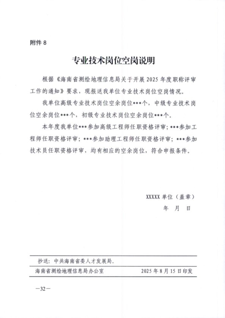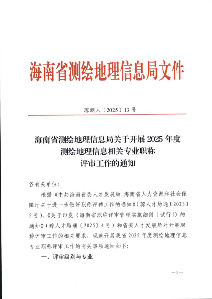 海南省测绘地理信息局关于开展2025年度测绘地理信息相关专业职称评审工作的通知