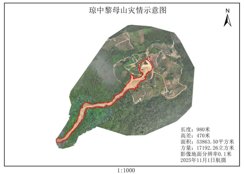 10月31日,琼中黎族苗族自治县黎母山地区突发山体滑坡地质灾害,严重威胁当地群众生命财产安全。海南测绘地理信息局闻令即动,迅速启动应急测绘Ⅲ级响应,于11月1日凌晨星夜驰援,以专业技术与优良作风圆满完成应急测绘保障任务,第一时间为灾情研判、救援部署提供了关键数据支撑。