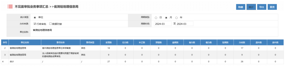 2024年3月海南测绘地理信息局行政许可办理统计