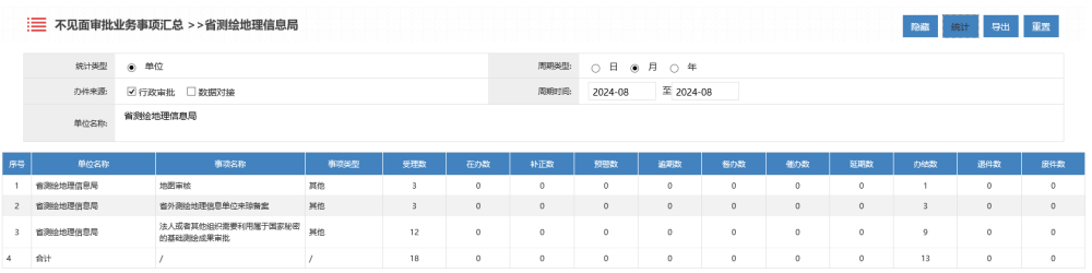 2024年8月海南测绘地理信息局行政许可办理统计