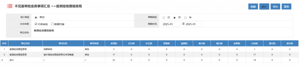 2025年1月海南测绘地理信息局行政许可办理统计