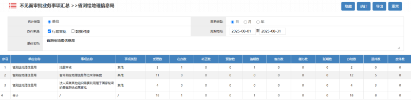 2025年8月海南测绘地理信息局行政许可办理统计
